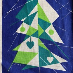 Superfin julbonad, 1960-tal 1970-tal, med en advents-ljusstake i rött, vitt, blått och ljusblått. 100 % lin. Fina färger i trycket. Uppspänd på två trälister med upphängnings-krok. Signerad LENE-MARIA. I bra beg. skick. Ett par bruna fläckar på baksidan varav en syns igenom lite i det vita kring ett av ljusen, och en i det röda hjärtat mellan ljusen. Men syns inte så mycket. 40 cm x 60 cm.