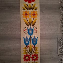 Handvävd och handbroderad väggbonad, 46x84 cm. Hantverk.