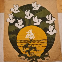 En dekorativ väggbonad med religiösa motiv. Den har en detaljerad design med en kyrkobyggnad och figurer. Årtalen 1790 och 1990 är också framträdande. Baksidan har text på ryska.