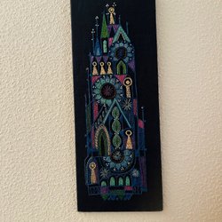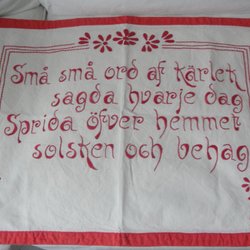 Motiv från Dalarna. Dekorativ väggbonad med motiv av Drottningen av Rika Arabien åker till Konung Salomo med Gåvor. Mått 85x43 cm.