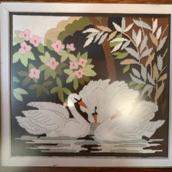 Vacker handbroderad bonad