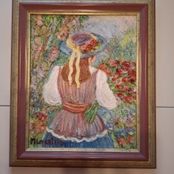 En fin väggbonad, vävd med ullgarn. Troligen 1960 - 1980-tal.
