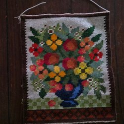 HANDBRODERAD VÄGGBONAD. Fint skick 28x33 cm. Titta på bilder för egen bedömning.