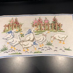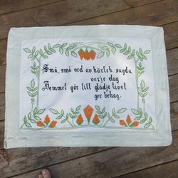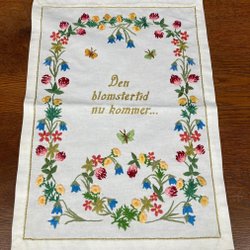 Handbroderad bonad. Den är ofållad, så du kan välja om du vill rama in den eller fålla den. Broderiet är mycket skickligt utfört. Se baksidan på sista bilden. Storleken är totalt 74*48 cm.