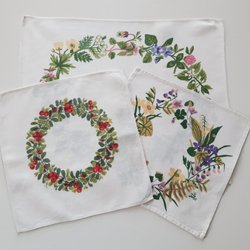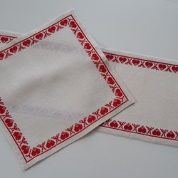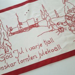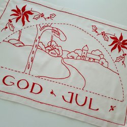 Handbroderad vit tvättsäck med rött broderi. Snöre och öglor för hopknytning. Fläckfri.