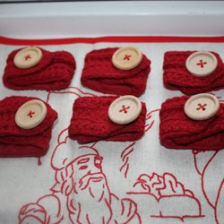 4 st retro linnehanddukar kökshanddukar med röd dekor och med vackert broderat monogram.
