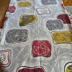 Underbart tyg i bomull. Fållat. Finns små håI se bild. övrigt fint skick. Troligtvis använts som underlakan. Mycket att sy av.