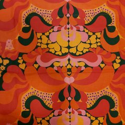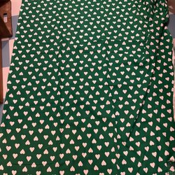 Det finns några små vävdefekter i tyget, se bilder. Cirka bredd 1,40 cm och längd 2,45. Fållade kanter på längden. Tyget är stabilt och väger 1,1 kg . Svårt att få till den exakta färgen. Typ mörk plommonlila, mörk ultramarin och turkosaktig. Hoppas att det hjälper.