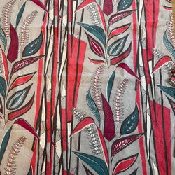 Ett retrotyg i brunt och beige i prickar som går in i varandra och skapar ett våg mönster. Syntet. 2,45 x 1,45. Zooma bilderna. Stadkant på enasidan