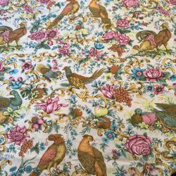 Ett vackert tyg med ett blommigt mönster. Perfekt för sömnadsprojekt eller inredning.