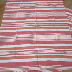 Ett tyg med ett randigt mönster i färgerna rött, grönt och gult. Hög kvalité mått : 680 cm . 152 cm brett . Oanvänt