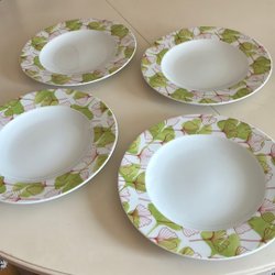 3. Gardin som fanns i mitt föräldrahem. Hängde vid ett altanfönster. Rosa, grå och vita löv utgör mönstret. Mått längd 165 x 76.