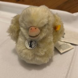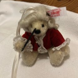 En söt Steiff miniatyr nalle med originalkartong och etikett. Perfekt för samlaren! Nallen är 8 cm lång och har nr. 662881