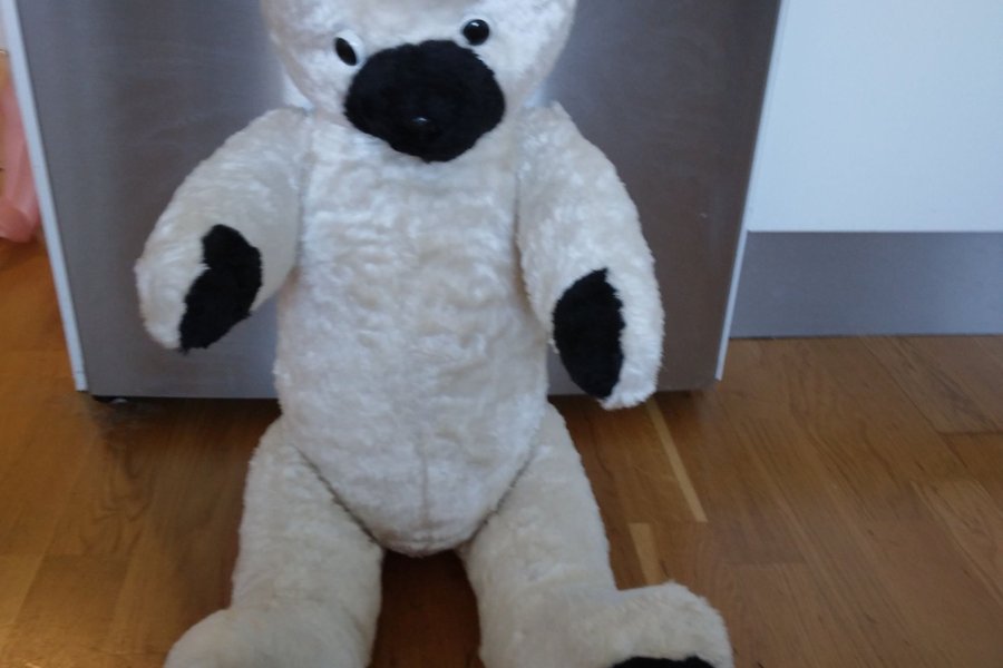 Halm nalle vit 50 talet 70 cm