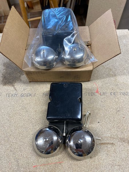 2 st ringklockor till telefoni , retro . Den ena oanvänd och ligger i orginalkartongen och den andra i mycket bra skick.Se bild för detalj