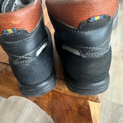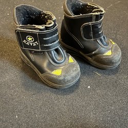 Ett par svarta vinterkängor med kardborreband, bästa vinterkängorna för små barn!