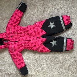 Ett par varma och vattentåliga vinterkängor i blått och rosa.