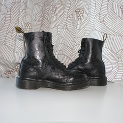 Svart känga med gröna detaljer och snören. Perfekt för utomhusaktiviteter och lek.