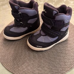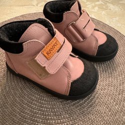 Ett par varma Kavat Fiskeby XC skor i rosa färg med svart sula. Skorna har kardborreband för enkel användning. Fint använt skick och precis insmorda med läderbalsam så redo för vintern.