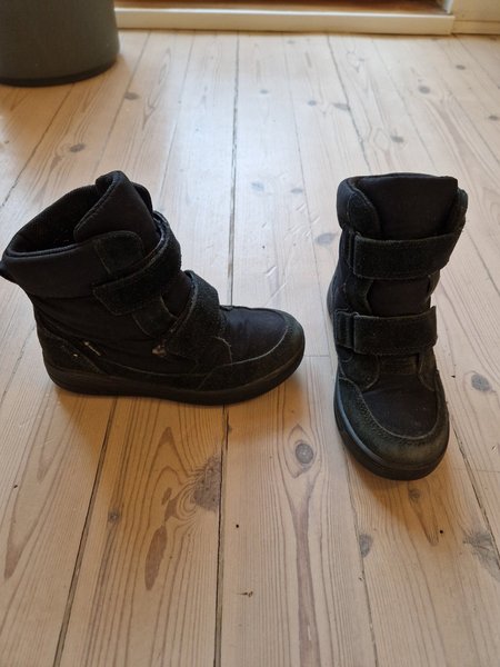 Ett par svarta vinterkängor med kardborreband från ECCO. Storlek 30