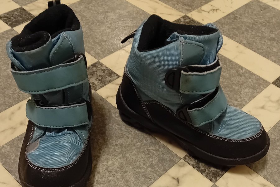 Svarta/ljusblå vinterskor i storlek 31. Fint skick. Endast avhämtning.