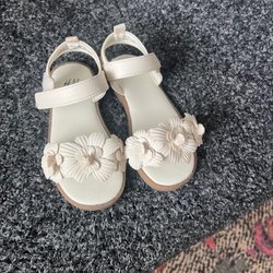 Två par vita sandaler från H&M. Båda är i fint skick. Ett par med rosett (använda fåtal gånger) och ett par med blommor (använda enbart på midsommar).