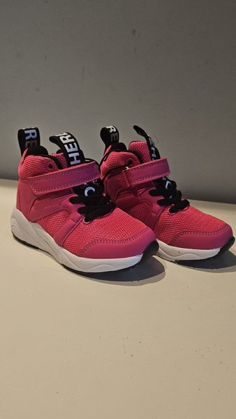 Ett par rosa fritidsskor med svart snörning och kardborreband. Perfekt för lek och bus. Helt nya, aldrig använda
