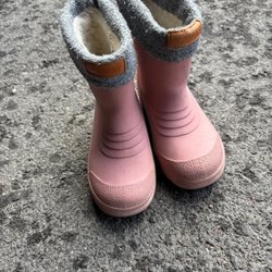 Ett par rosa slip-ons med ett färgglatt tryck på ovansidan. Skorna har vita sulor och gula detaljer runt öppningen. De är lätta att ta på och av. Storlek 22