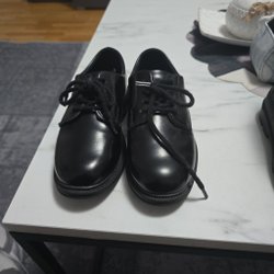 Ett par svarta kängor med snörning och dragkedja. Perfekt för höst och vinter.