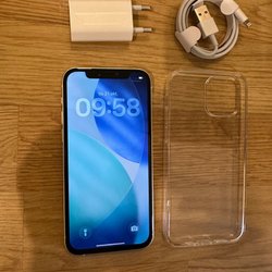 iPhone 11 med 100% batterihälsa. Allt funkar bra, något ljus längst ner. Nollställd och utloggad, ej operatörslåst. Skärmskydd, skal, laddare och låda ingår. 64 GB data.