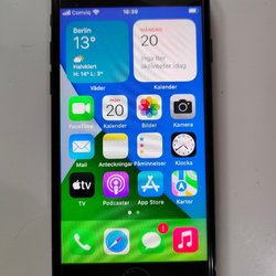 Skärmen är sprucken vilket inte påverkar funktionaliteten.