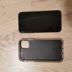 iPhone 11 i nästan ny skick iCloud utloggad olåst 64gb batteri 100% inga kantstött inga repor på fram eller bak glaset jätte fin skick. Ända negativa är att Face ID funkar inte.