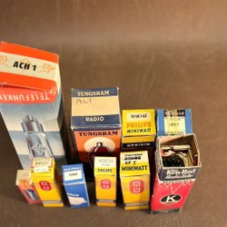 Förpackningar skadade. Originalförpackningar. Lagrat länge. Många rör är nya men kan finnas som är använda. Tips! Sälj vidare på elektronikloppis.