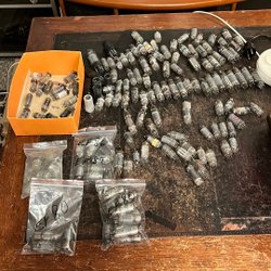 Parti med i alt 21 begagnade EF86 rör från olika tillverkare som Mullard, Philips, Telefunken, Siemens och Tungsram.