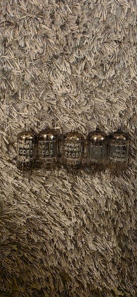 Består av 4 styck Philips ECC83 samt 1 okänt ECC83.