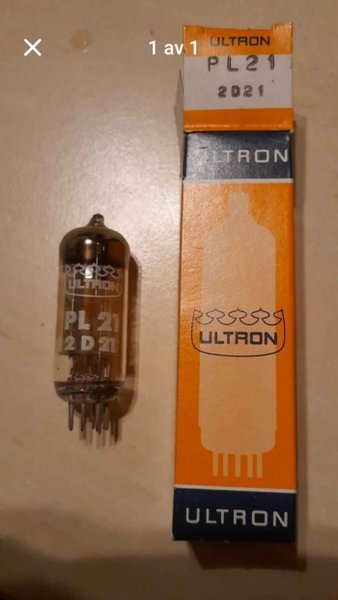 Elektronrör av modellen ULTRON PL21 Detta rör är lämpligt för användning i kompatibla elektroniska apparater.