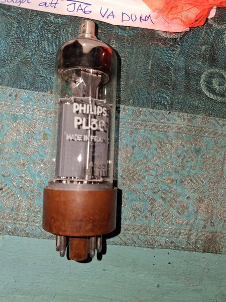 Elektronrör av märket Philips, modell PL36. Tillverkad i Frankrike.