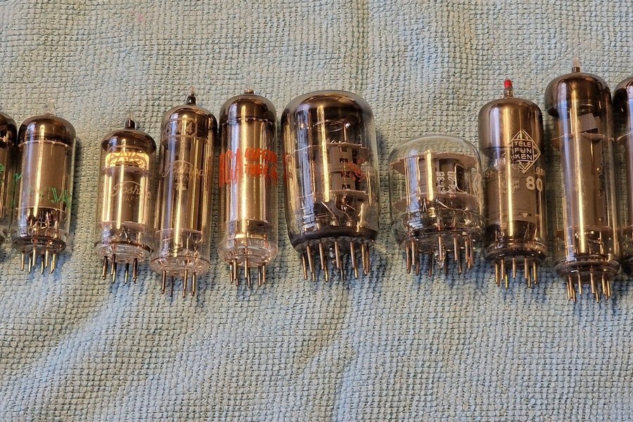 3 st 6AU6A, 6AV6, 6X4, OA2, 6J11, 6D10, EF80 redtip, + 3 okända.