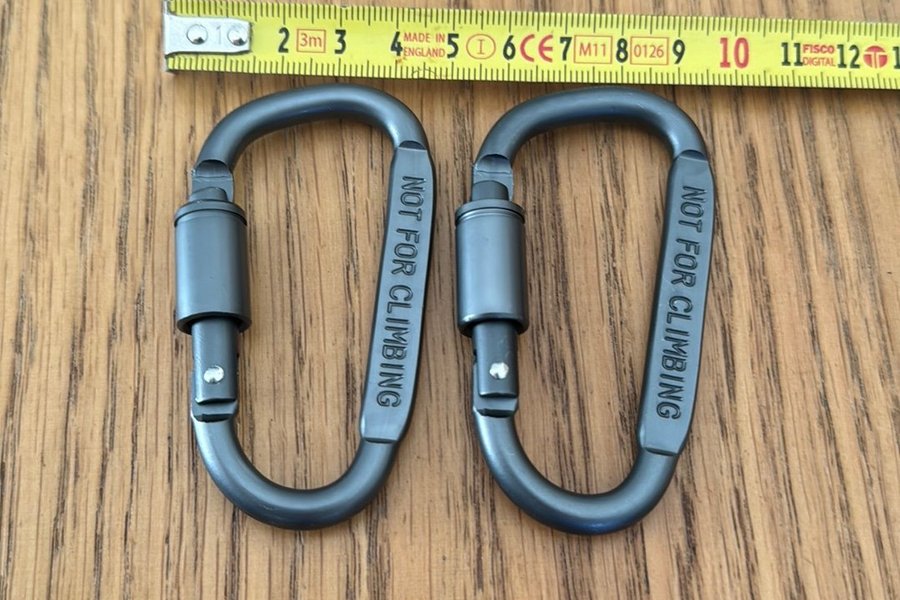 2 stlättare karbinhakar med gänga som gör det möjligt med låsning.