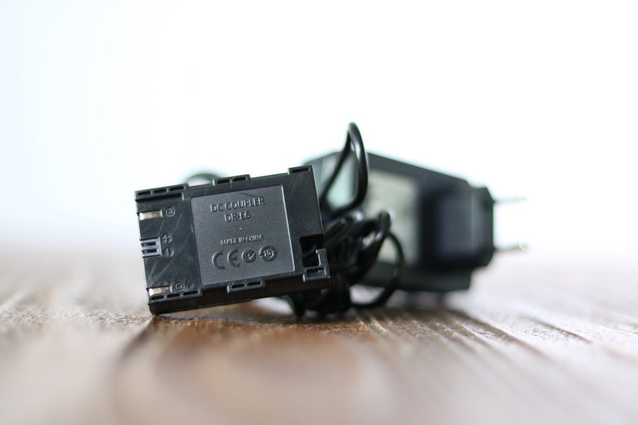 Fungerar med kameror som tar LP-E6 batterier. DC Coupler DR-E6 med vägguttag.