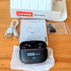 Säljer ett par hörlurar i praktisk hållare. Perfekt för musik eller podcasts.
