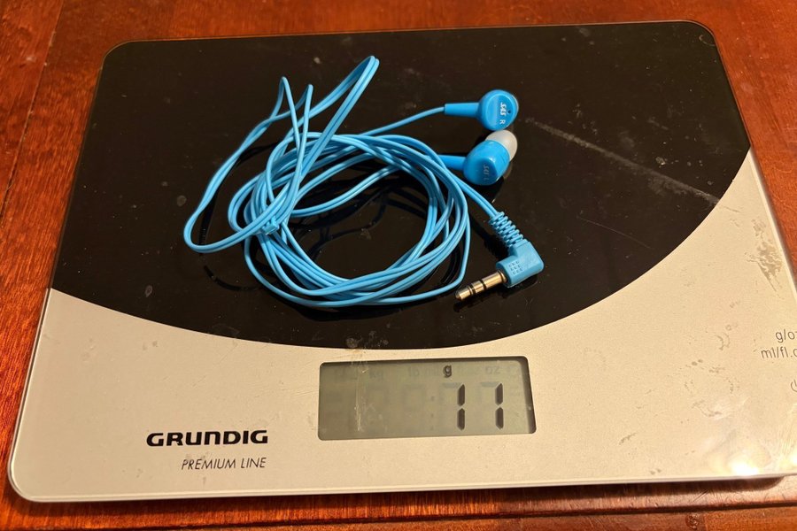 Hörlurar av märket SAS. Färgen är blå. Vikten är 11 gram. jag fick hörlurarna på en flygning till Thailand. Men eftersom jag har egna hörlurar med mig när jag reser så är de inte använda. Jag har däremot testat dem snabbt för att se att de fungerar, och de fungerade utmärkt . ??