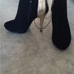 Ej skrikig silvrig. Snygga silverfärgade ankelboots med dragkedja på sidan och en träfärgad klack. Perfekt för festliga tillfällen eller för att piffa upp vardagsoutfiten.