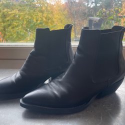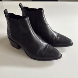 Eleganta svarta ankelboots i storlek 38 från märket Attitude. Perfekta för både vardag och fest. Stilren design med en spegeldetalj i klacken som ger en unik touch.