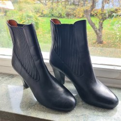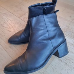 Eleganta svarta ankelboots i storlek 38 från märket Attitude. Perfekta för både vardag och fest. Stilren design med en spegeldetalj i klacken som ger en unik touch.