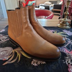 Ett par snygga ankelboots i en varm brun färg. Bootsen har en dragkedja på sidan och en bekväm klackhöjd som gör dem perfekta för både vardag och fest. Använda en gång.