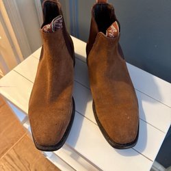 Ett par bruna boots i mocka från R.M. Williams. Storlek 37/4 1/2 G. Stilrena och bekväma. Sparsamt använda och mycket fint skick.