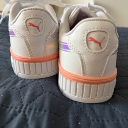 Snygga vita sneakers från Puma. Perfekt för en avslappnad och stilren look. Klassisk modell med Pumas logga på sidan och baksidan. repa på baksidan som visas på bilden. Se bilderna för skicken.