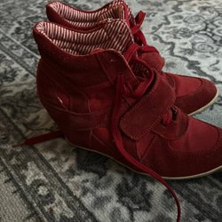 Bruna boots med kilklack och snörning. Dekorativ fuskpäls upptill. Står Graceland i dom
