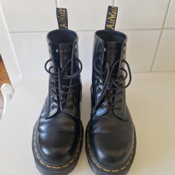 Klassiska svarta Dr Martens kängor av modellen 1460 Pascal. Lädret är mjukare för den här modellen än de klassiska kängorna. Ofodrade.